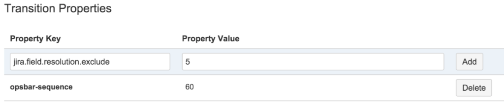 What can I set? The properties can be used to change certain issue properties depending on transition or status achievement. For example, the number of selectable options for the resolution field on the transition screen can be restricted. In addition, the order of the transition buttons can be adjusted or the edit button for an issue can be completely removed as soon as it has reached a certain status (jira.issue.editable = false).