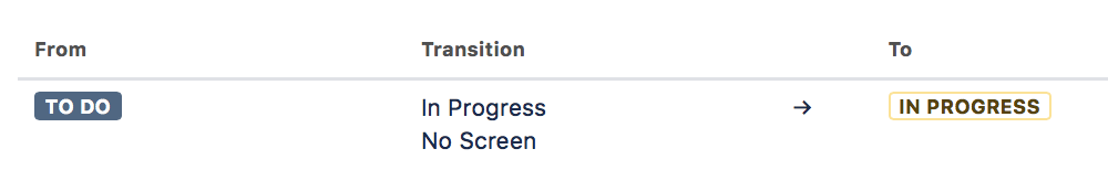 - Transition: Eine Transition ist eine Verbindung zwischen zwei Status, die es einem Issue ermöglicht, von einem Status zum anderen zu wechseln. Eine Transition ist eine einseitige Verbindung – d.h., soll ein Issue zwischen zwei Status hin und her bewegt werden, müssen dafür zwei Transitions erstellt werden.